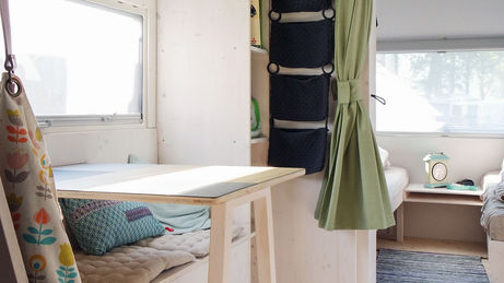 Wie bringt man ein Kinderzimmer und ein Elternschlafzimmer in einen alten Wohnwagen aus den 90er-Jahren? Diese Frage war der Ausgangspunkt für den vollständigen Umbau eines Knaus Eifelland in ein fahrbares Tiny House für eine kleine Familie.